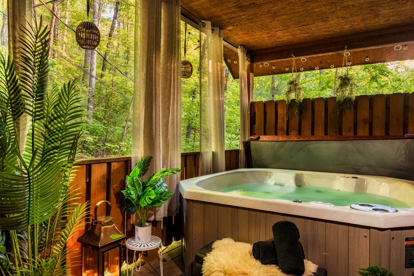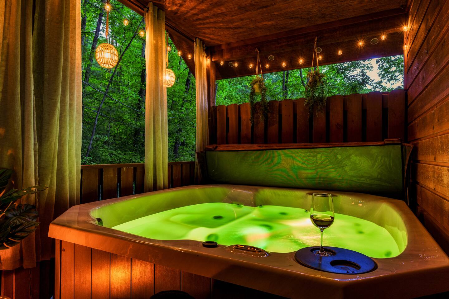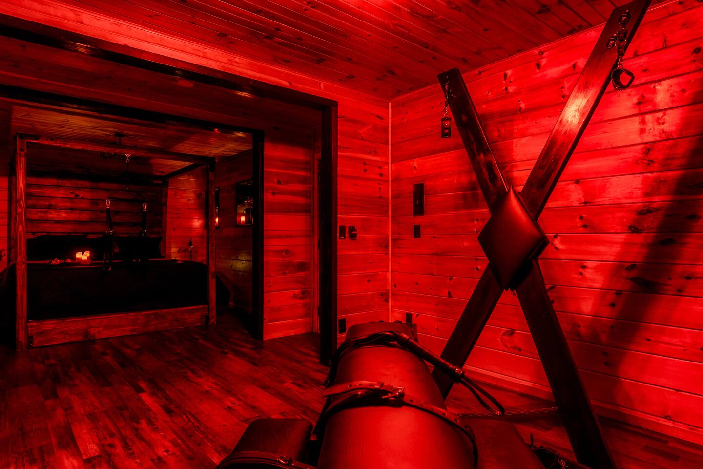 * Hot Tub * Private * 2minutes to downtown Pigeon Forge * Shower for two. Double rain shower. * Electric Fire Place * 50 inch Roku TV * Washer and dryer * We provide extra cleaning supplies * Shampoo, Conditioner, Body Wash all provided * Robes provided * Keurig with k-cups and creamer provided (8 pods) * Bidet toilet seat keeps things extra clean, with a seat warmer, wash cycles and dryer. * Bluetooth speaker * Fast wifi *Charcoal grill (please bring charcoal) * We have packages for every occasion. Birthday, Anniversary and Spicy occasions. Let us help plan your getaway to make it extra special. Hot Tub Area The hot tub area is designed for romance. Solar lights, flameless remote candles and curtains for extra privacy Bedroom * Custom built sturdy king bed with hooks *Flameless candles with remote *Quality Bed Restraints, Flogger, Riding Crop, Masks, Hand, Ankle and Thigh Cuffs. *Swing (hold up to 300lbs). *Custom spanking bench hold (500lbs) *Custom BDSM cross hold ( 500 lbs) *Custom lighting. Bedroom lights are dimmable and color changing to help set the mood. All cuffs are removable and inter changeable. Feel free to move them from station to station. Quality: We designed with quality in mind. All cuffs and whips are high quality. All furniture is sturdy enough to handle weight. Cleanliness: We take extra measures to ensure a clean and fun experience. The bedroom is deep cleaned and sanitized by our professional cleaning staff. Our cleaning staff has consistently received over 600 5 star reviews. Extra cleaning supplies and sheets will also be available. (Lysol, Clorox wipes,Tide pods) Privacy: The entire cabin is yours! Cabin owners are NOT present during your stay. Check in is at 4pm Check out is 11am. Optional Add on to enhance your stay! *Romance package available . Heart Shaped rose decor, surrounded by flameless candles on bed with a trail of rose petals. ($40) *Spicy Package- lubricant, mini massage wand, masks, feather, and couples vibrating ring.($60) *Late check 1pm is may be available ($40) *Dozen roses floral arrangement,6 chocolate covered strawberries and sparkling cider ($150) * Birthday Package- Balloons and cake ($125) Please message me if you would like to add any packages. We also send a reminder out two days before check in. *Check out instructions. It's your vacation and the last thing you need to do is clean before check out. We take care of everything! We just ask you to take out any garbage to keep pests and animals away and lock the doors. That's it! No long to-do list. Hemlockpines LLC