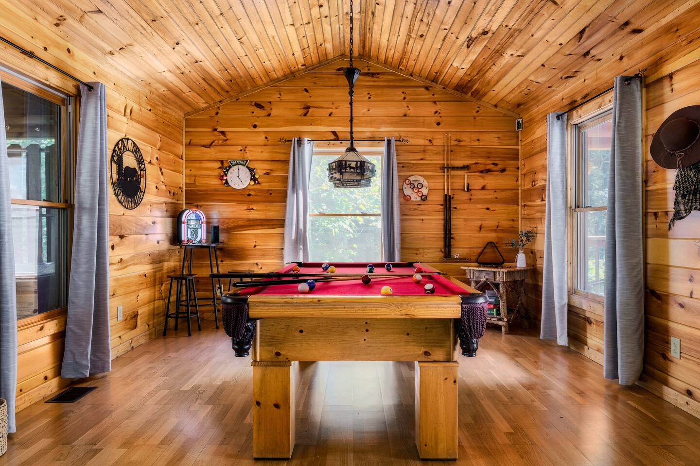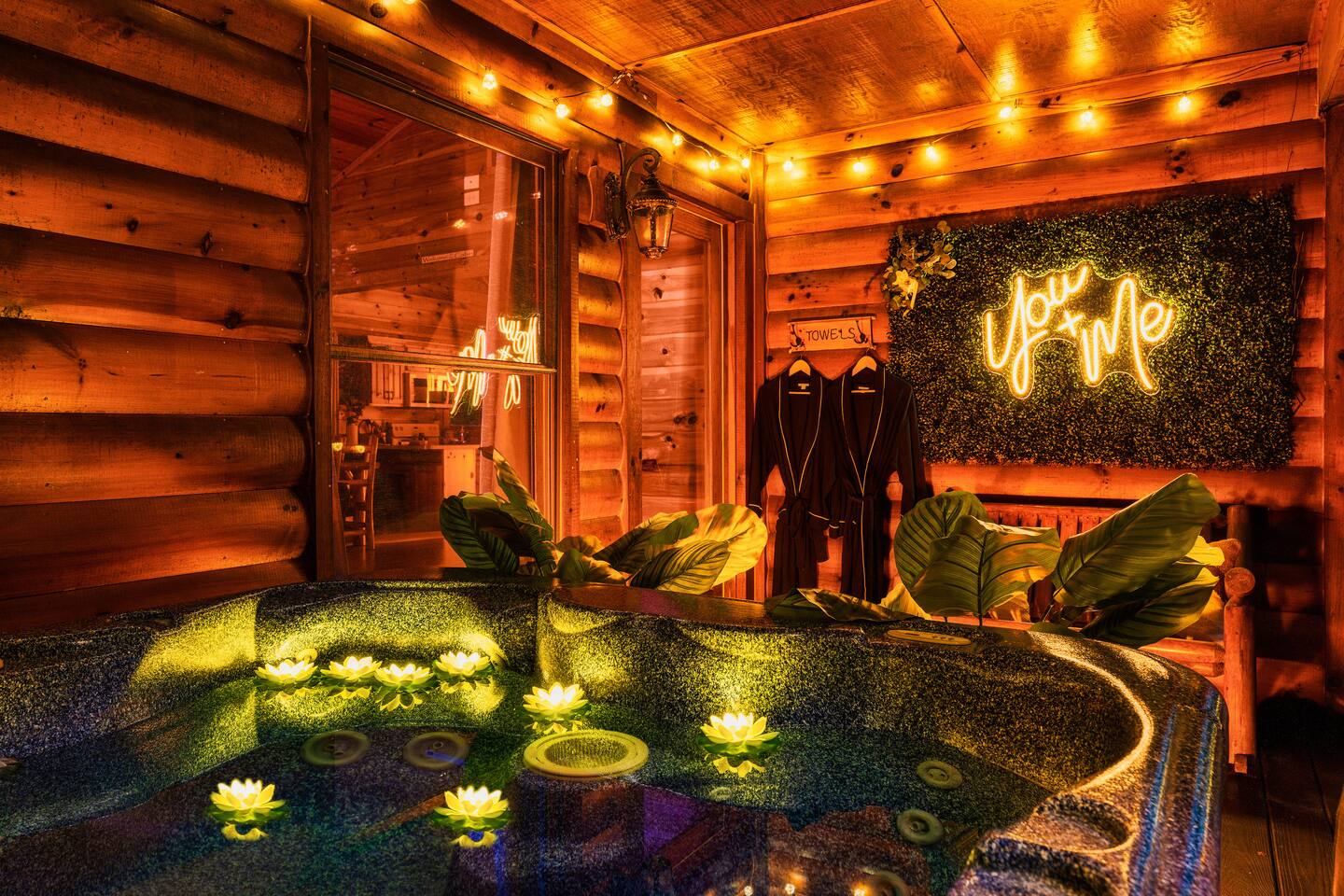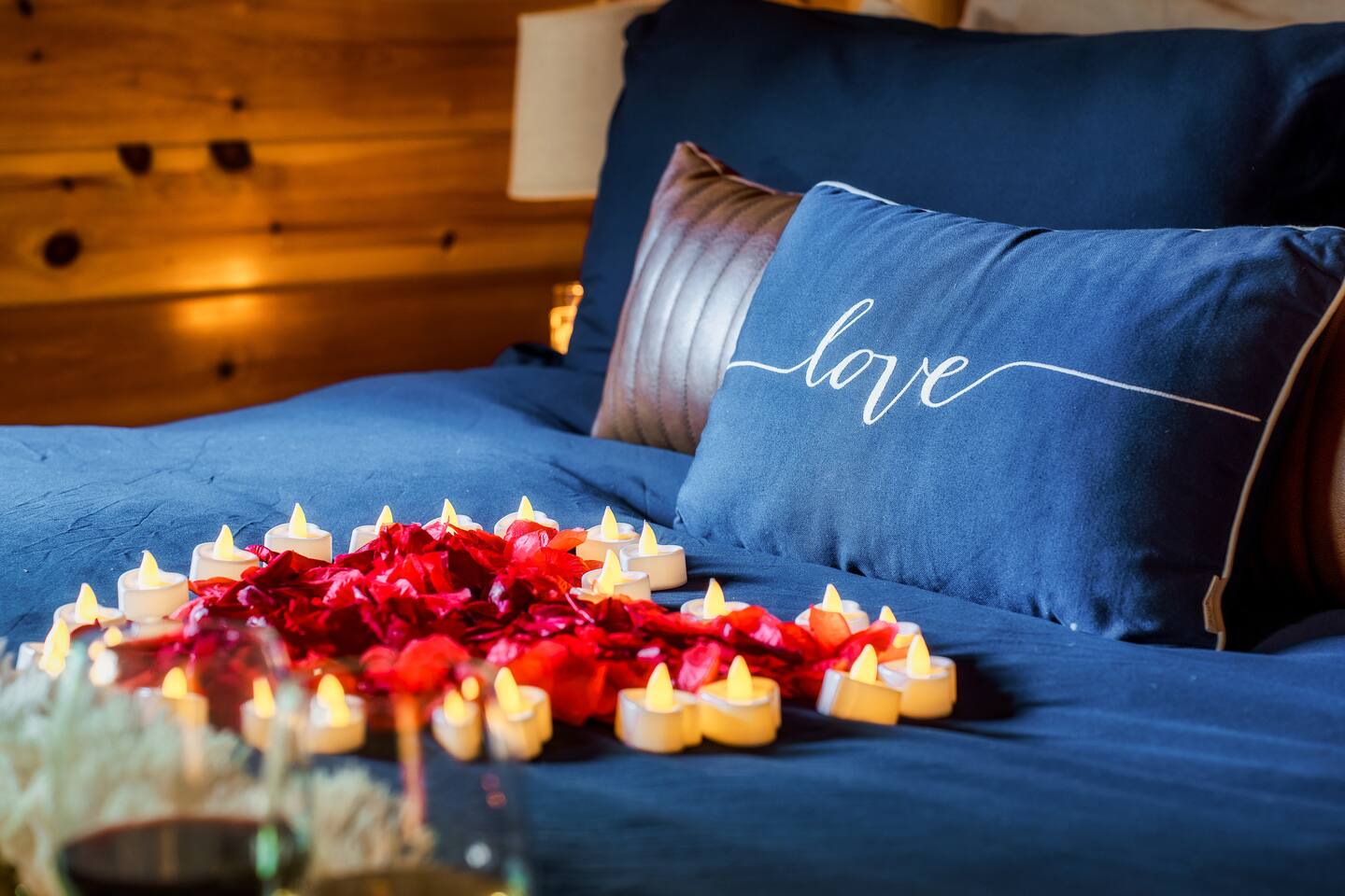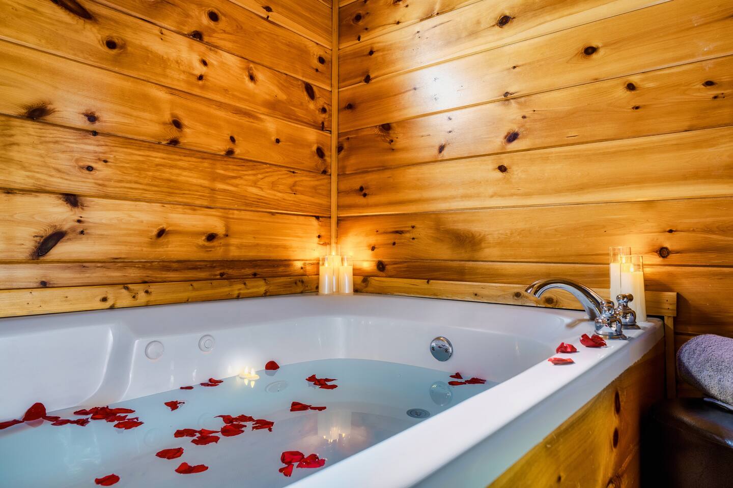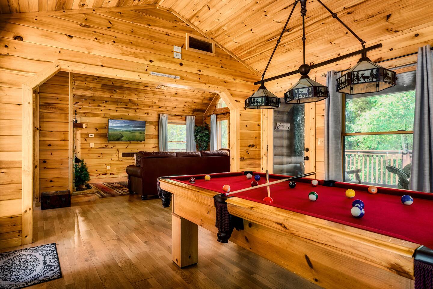 *2 miles to Gatlinburg and Pigeon Forge *Pool Table *Hot Tub *Bluetooth Jukebox *28" rain shower for two *Fireplace *King Size Bed *Queen sleeper sofa *55-inch Roku TV *Fast Wi-Fi *Jacuzzi Tub *Keurig and Drip *K cups and creamer *Privacy & Location *Robes *Luxury Bedding *Charcoal grill *Flameless candles *Romance package available($40) rose petals and candles on bed. *Late check out 1pm($40) **Please note the cabin is tucked in the mountains. Some of the roads can be curvy and steep.