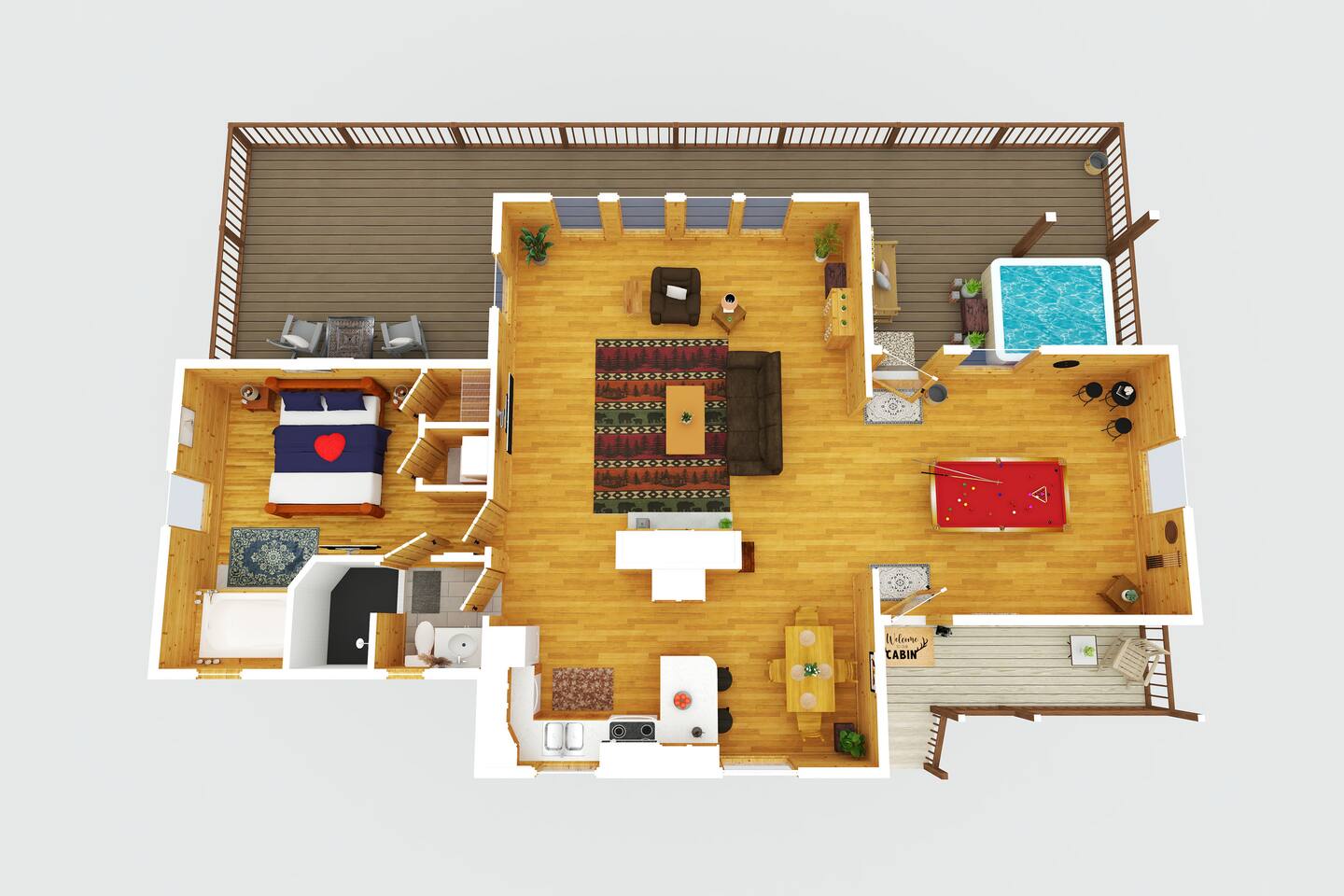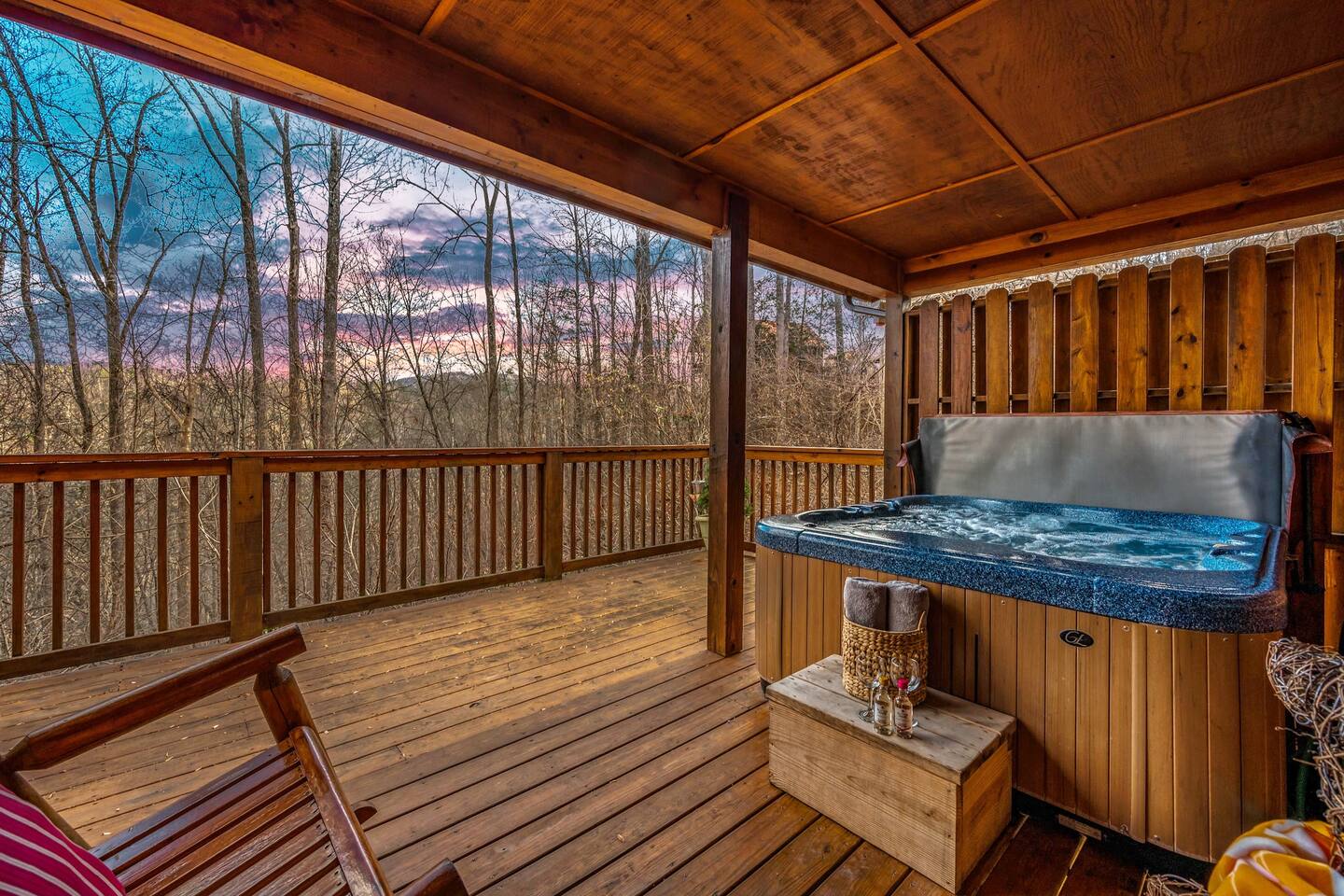 If you are looking for a private romantic get-away this is the cabin for you! Secret Hideaway was designed with romance in mind. The cabin is just 2 miles from the vibrant town of Gatlinburg. Nestled in the this cozy cabin inside you'll find a warm, inviting space with bear decor, a fully-equipped kitchen, and comfortable furnishings that create a homey atmosphere. Enjoy some friendly competition on the pool table, unwind in the luxurious jetted tub, or spot a bear from the private deck as they occasionally wander through the area. Gather around the fireplace for a cozy evening with loved ones, or explore the nearby hiking trails and scenic drives. With Gatlinburg’s attractions just a short drive away, our cabin is ideally situated for both relaxation and exploration. Experience the beauty of the Smoky Mountains and create unforgettable memories in our delightful getaway. Bedroom (down stairs one level home) *Beautiful King Log Bed *Flameless Candles w/ Remote *Luxury Goose Feather Down Bedding *Quality sheets. You won't want to leave the bed! *Jacuzzi Tub for two with floating candles and rose petals (upon request) *New 42'' TV Roku TV *We are now offering a romance package. We will decorate the bed with rose petals and candles in a heart shaped. Floating candles for the jacuzzi tub and a box of rose petals with 2 choclates. This is extra service the cost is $40. Please let us know 24 hours in advance if you would like to add this service. Bathroom *Recently remodeled has a 26" rain shower and a shower large enough for two! *Single Vanity *Quality Towels. We leave 8 towels but more are available upon request. Kitchen * Keurig k-cups and coffee creamer provided * Fully stocked kitchen oil, spices and foil provided Game Room * Large Quality Pool Table * Bluetooth Juke Box * Ring Toss Game * Couples Game * Cards and Checkers Living Room * Gas Fireplace * Queen sleeper sofa * 55" Roku TV * Bear Decor * Comfortable furniture and extra blankets Outside *Charcoal grill (park style) * Romantic hot tub area with lots of privacy and curtains. * Candles and lights * Rocking chairs Laundry *Stackable washer and dryer with extra tide pods provided. **Cleanliness and Service** Hemlockpines LLC is a small family business located in Gatlinburg. We are here to make your vacation memorable. We have consistently had 5 star reviews for cleanliness. We are here to assist you planning your vacation and to make sure your stay is as clean and comfortable. Please do not hesitate to contact me with any concerns or questions during your stay. We try our best to get you into the property early. As soon as the cabin is ready, I will send you a message on the Airbnb app. **Check out** No long list of to-do list Our check out time is 11am if you need a later check out please message, we may be able to accommodate depending on our schedule Late check out is ($40) for a 1pm check out. Location 12 min to Anakeesta (5.3 miles) 12 min to Dollywood (7.5 miles) 17 min to Ober Ski Area (6miles) 12 min to the Island Pigeon Forge (7 miles) 8 min Ripley's Aquarium (3 miles) 10 min Smokey Mountain Nation Park Entrancei